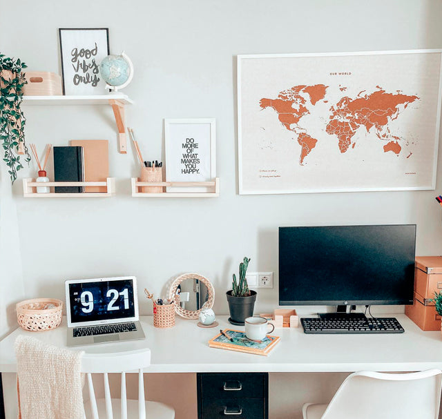 Nun, jetzt haben Sie einen kreativen Schreibtisch, an dem Sie bequem und effizient telearbeiten können. Haben Sie schon einmal darüber nachgedacht, wie Sie die Wände in Ihrem Büro dekorieren?