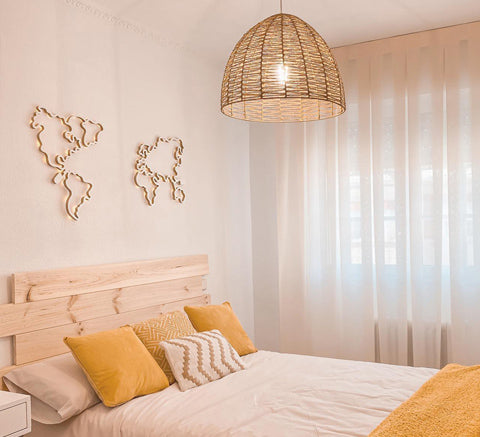 Der rustikale Stil schafft eine entspannte, gemütliche und traditionelle Atmosphäre, die an die Natur erinnert. Holz ist der Schlüssel zu dieser Art von Dekoration. Fügen Sie eine handgefertigte Weltkarte aus Holz hinzu, um Ihren Stil zu unterstreichen und Ihre Wände zu schmücken.