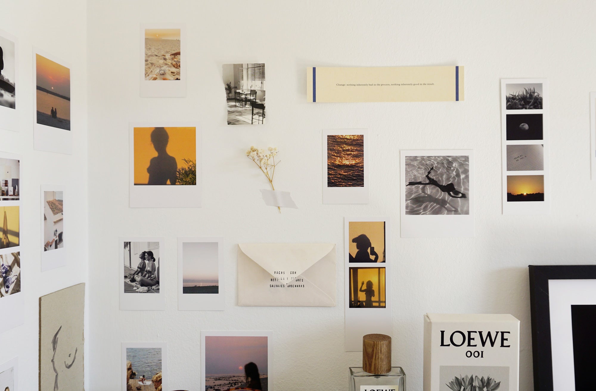 Füllen Sie die Wand mit Ihren schönsten Momenten und schaffen Sie eine Ecke der Erinnerungen. Entweder mit Klebeband oder an einer Bastelschnur als Girlande aufgehängt.