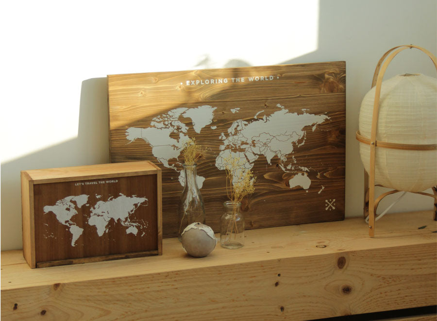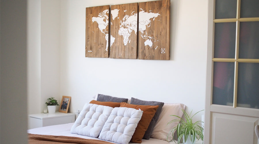Ganz einfach, haben Sie einen kurzen und kleinen Flur? Hängen Sie eine Weltkarte mit Ihren Lieblingszielen auf und klicken Sie darauf Erinnerungen an. Sie verleihen Ihrer Einrichtung nicht nur einen natürlichen Touch, sondern werden auch bei jedem Zimmerwechsel zu sehen sein und Sie zum Träumen von Ihrem nächsten Reiseziel inspirieren.