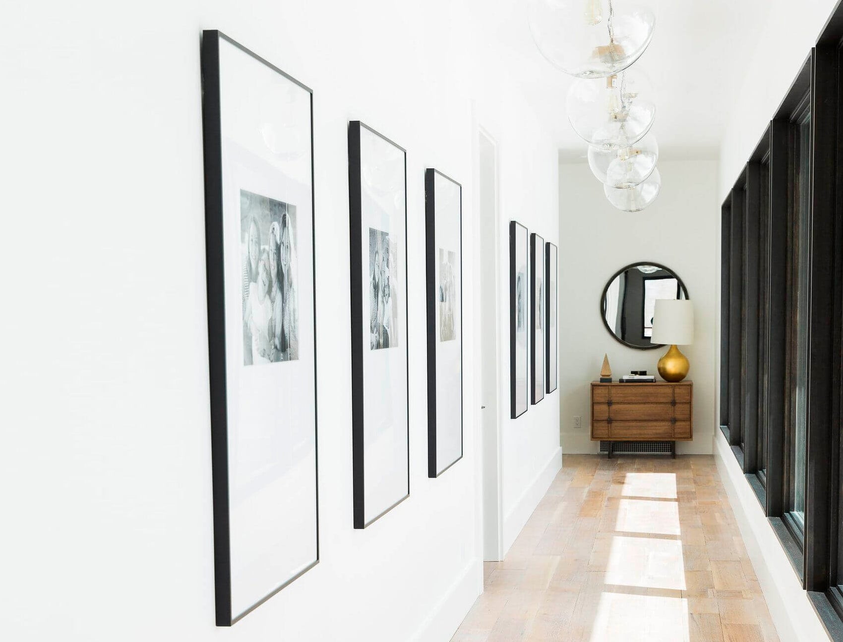 Wenn Ihr Flur nur mäßig breit ist, ist die Anbringung von Familienfotos oder Fotos von Ihren Reisen eine gute Alternative. Verwandeln Sie Ihren Korridor in eine Kunstgalerie, indem Sie Ihre schönsten Erinnerungen aufstellen.