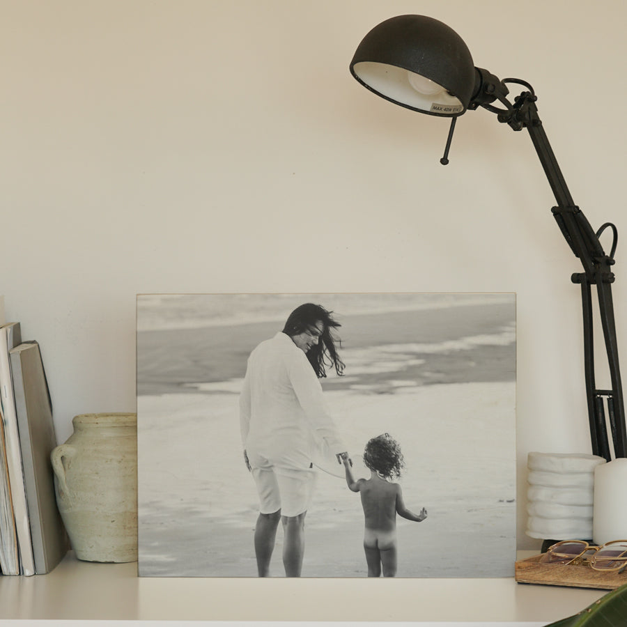 Verleihen Sie Ihren Erinnerungen einen rustikalen und eleganten Touch mit unseren Fotodrucken auf Holz. Ein dekoratives Stück, das die Schönheit Ihrer Lieblingsmomente mit der Wärme und der Textur eines rohen Materials verbindet, perfekt für jeden Anlass.