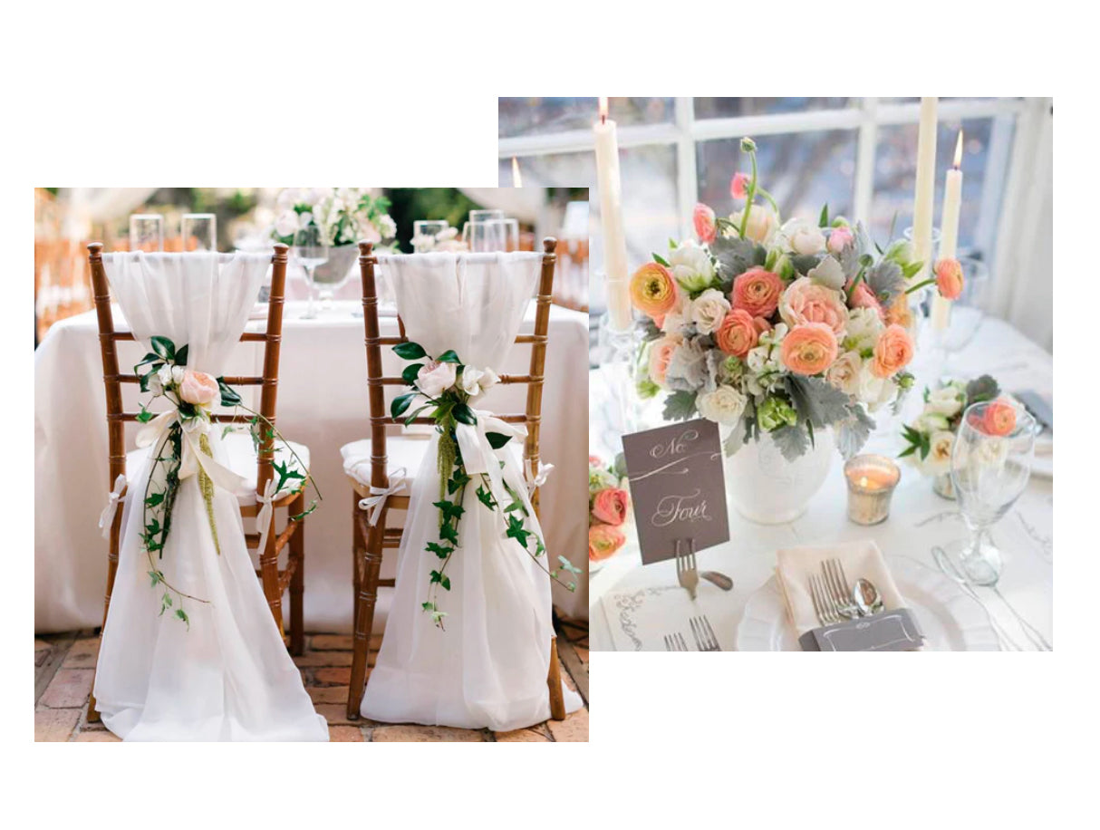 The colour white is the main protagonist in classic or traditional weddings, with flowers in pastel shades, often pink. Elegance is everywhere.