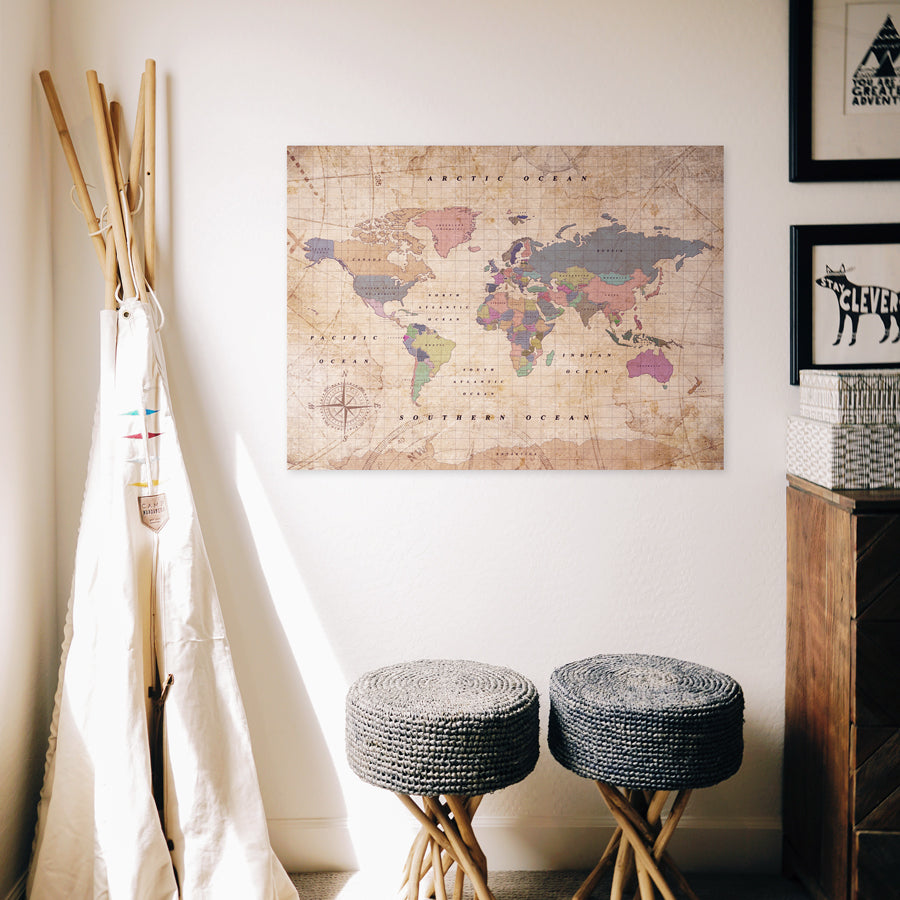 Relive the best moments of your adventures, discover new places and plan your next destination. Choose the decorative map that best matches the colours and elements of your decor and customize your world.