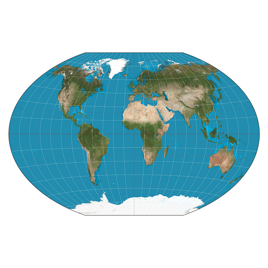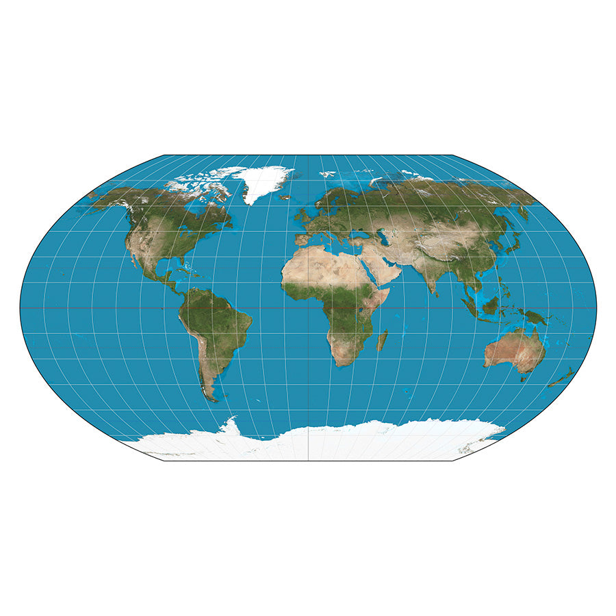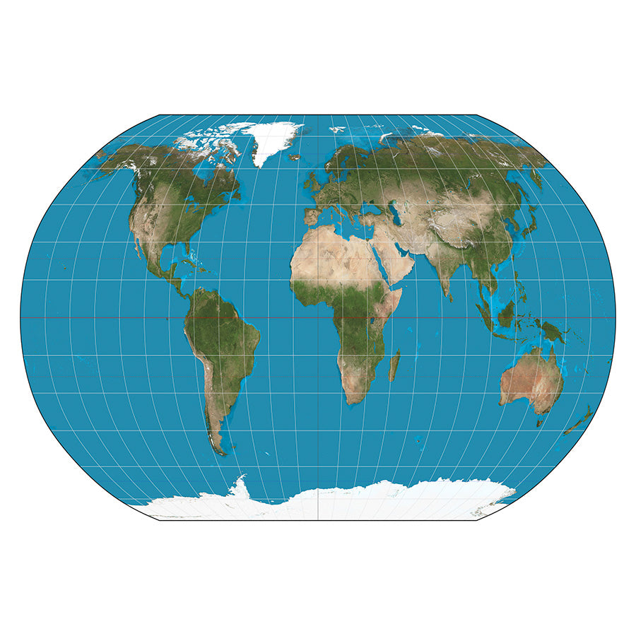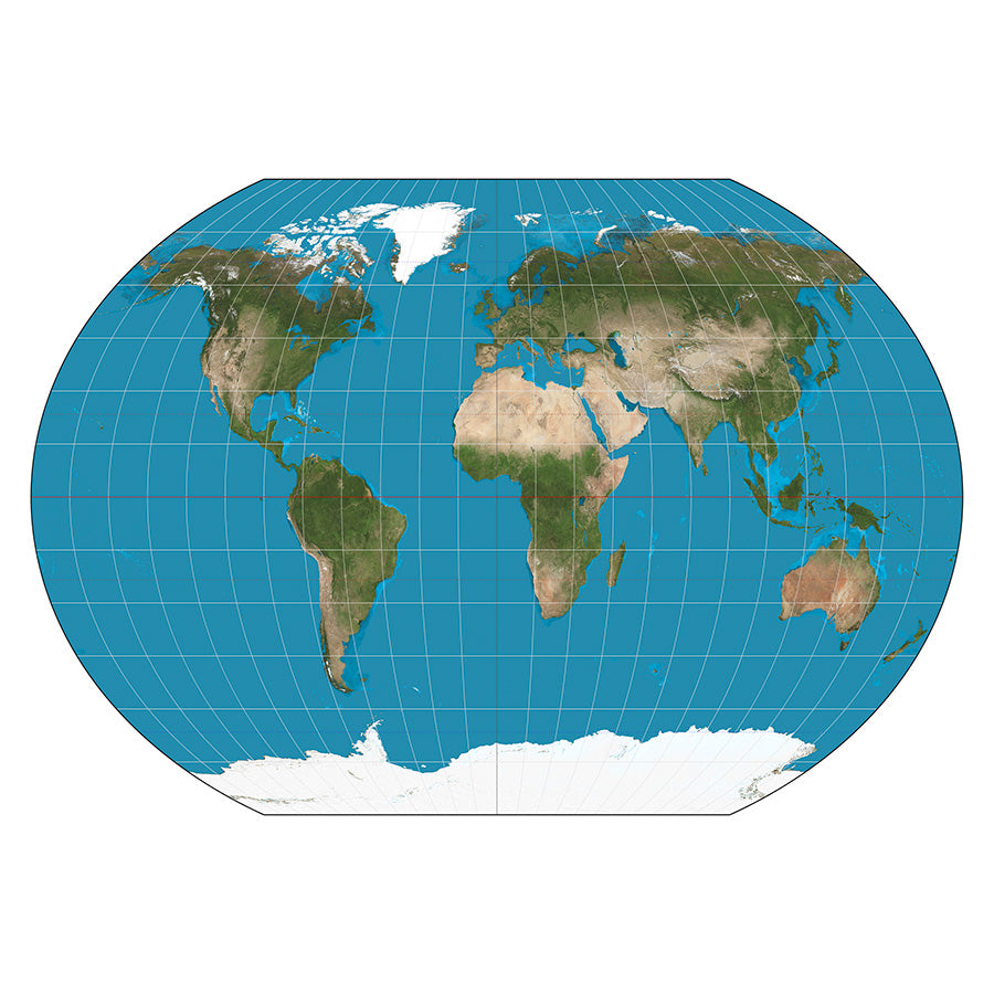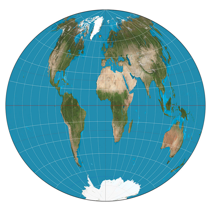 The best known and most widely used cartographic projection of the Earth to this day; its advantage is that it graphically shows the distribution of the countries of the world.