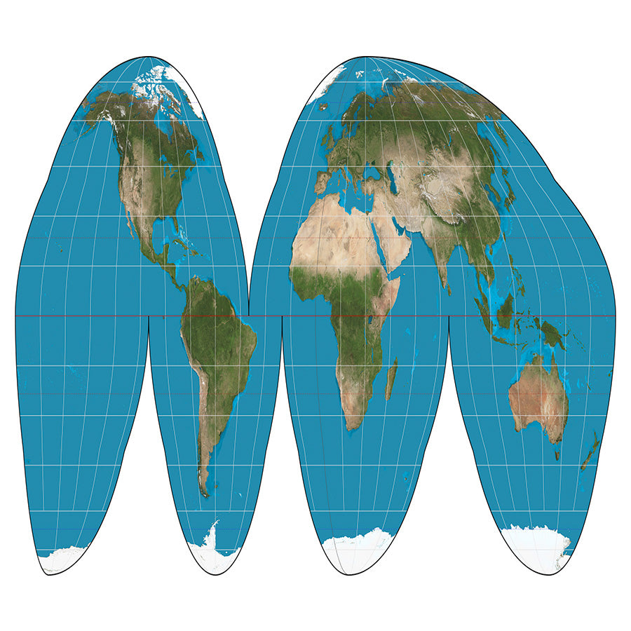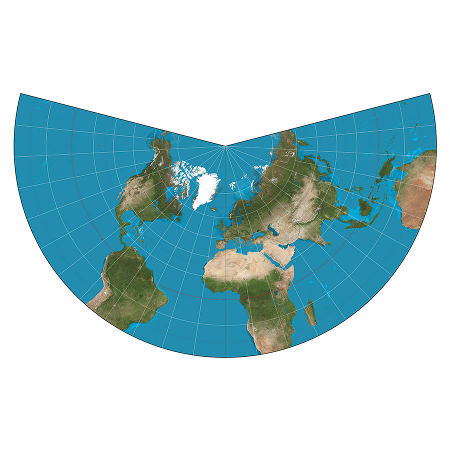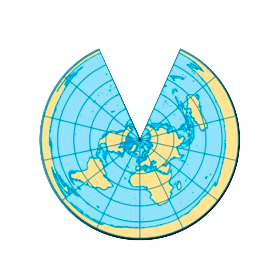 In this type of conic map projection, several cones are superimposed, with the intention of not losing the real proportions of the Earth, so its shape may seem distorted to those who are passionate about perfect figures.