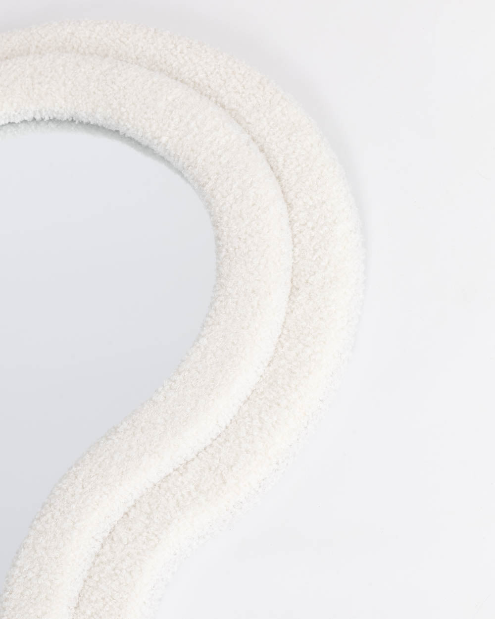 Dale personalidad y calidez a cualquier rincón con este espejo de diseño orgánico y textura suave. Su tejido teddy aporta un toque acogedor y en tendencia, perfecto para cualquier espacio. Puedes apoyarlo en el suelo o colgarlo fácilmente gracias a sus ganchos traseros.