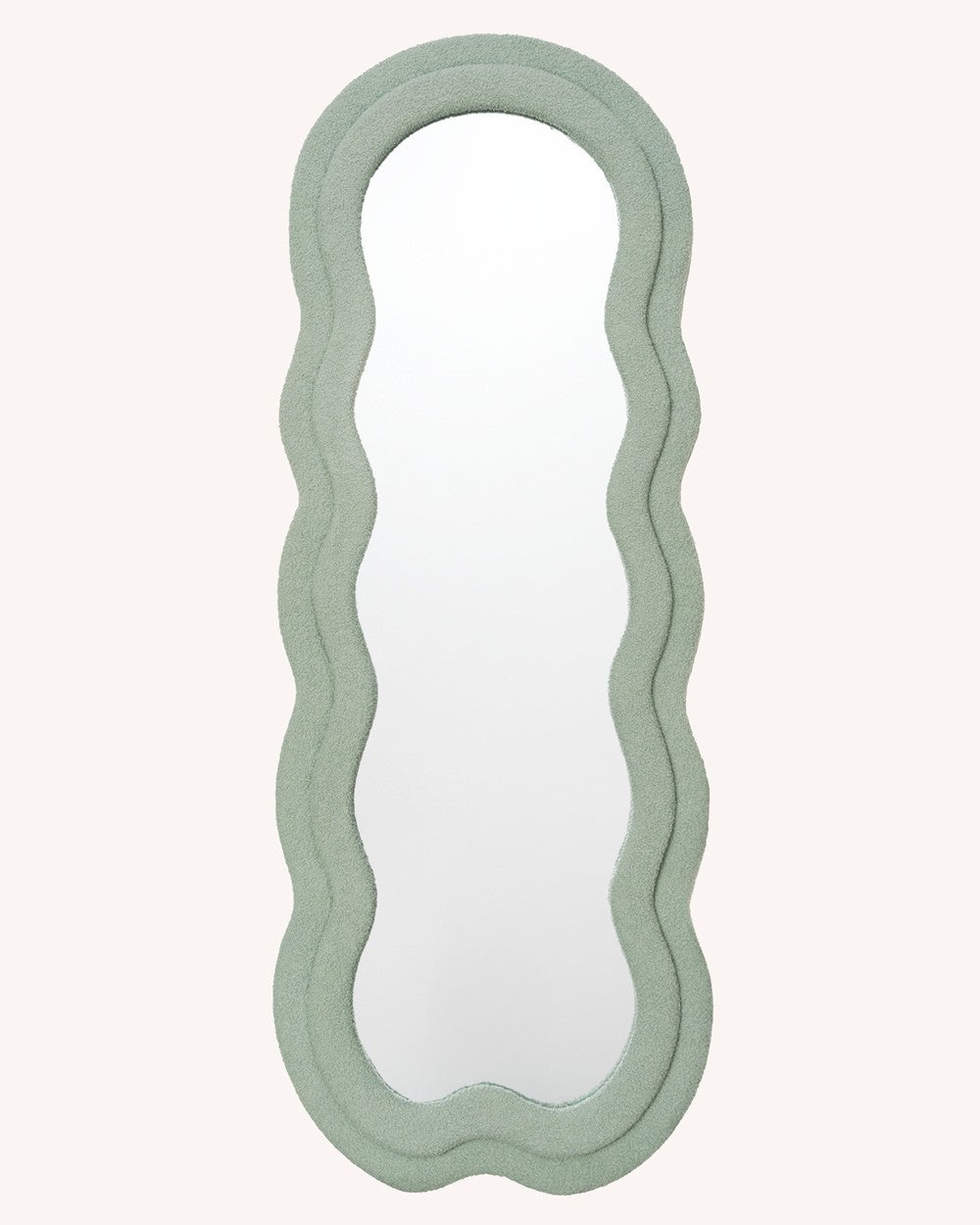 Dale personalidad y calidez a cualquier rincón con este espejo de diseño orgánico y textura suave. Su tejido teddy aporta un toque acogedor y en tendencia, perfecto para cualquier espacio. Puedes apoyarlo en el suelo o colgarlo fácilmente gracias a sus ganchos traseros.