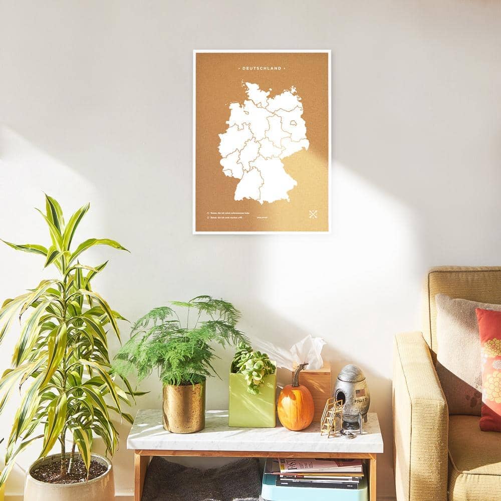 Decorate the walls of your home with a cork map of Germany. Choose between black or white for the frame and design, and think in which room you'd like to hang it. You know it already? Perfect! Now, all you have to do is place the pins included and add your most beautiful vintage-style shots.