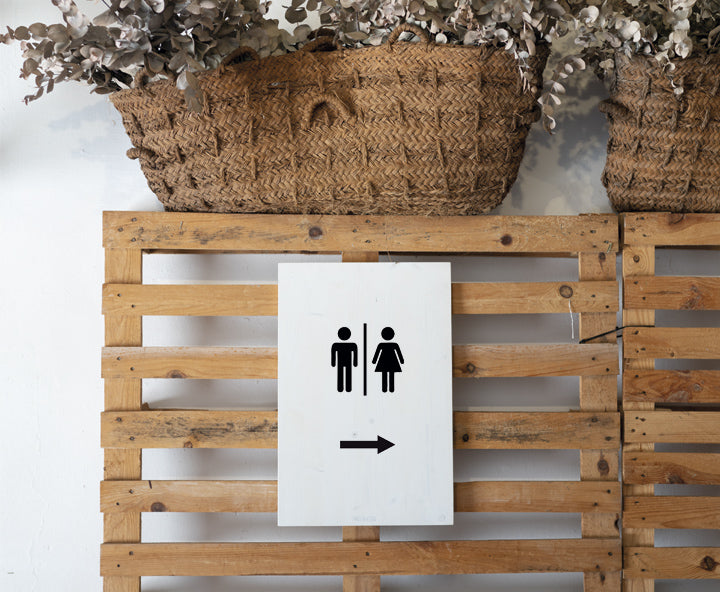 Eine kreative Idee für die Beschilderung der Toiletten Ihres Unternehmens oder Ihrer Einrichtung, mit hochwertig lackiertem Material.