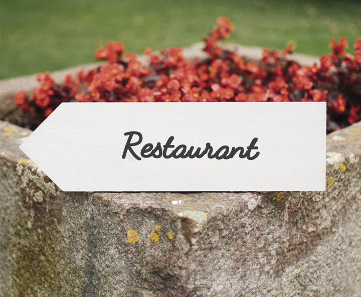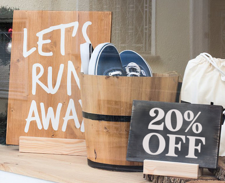 Lassen Sie stilvolle Rabattschilder hinter sich und fügen Sie ein dekoratives Stück Holz hinzu, um den Ecken Ihres Lokals mehr Klasse zu verleihen.