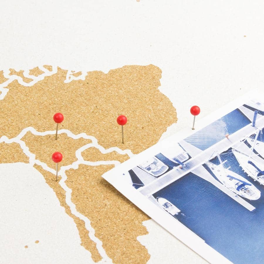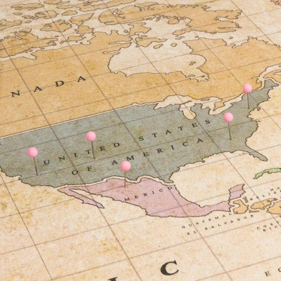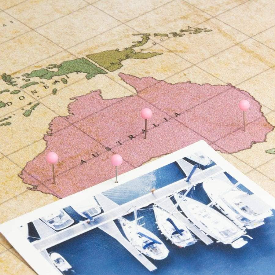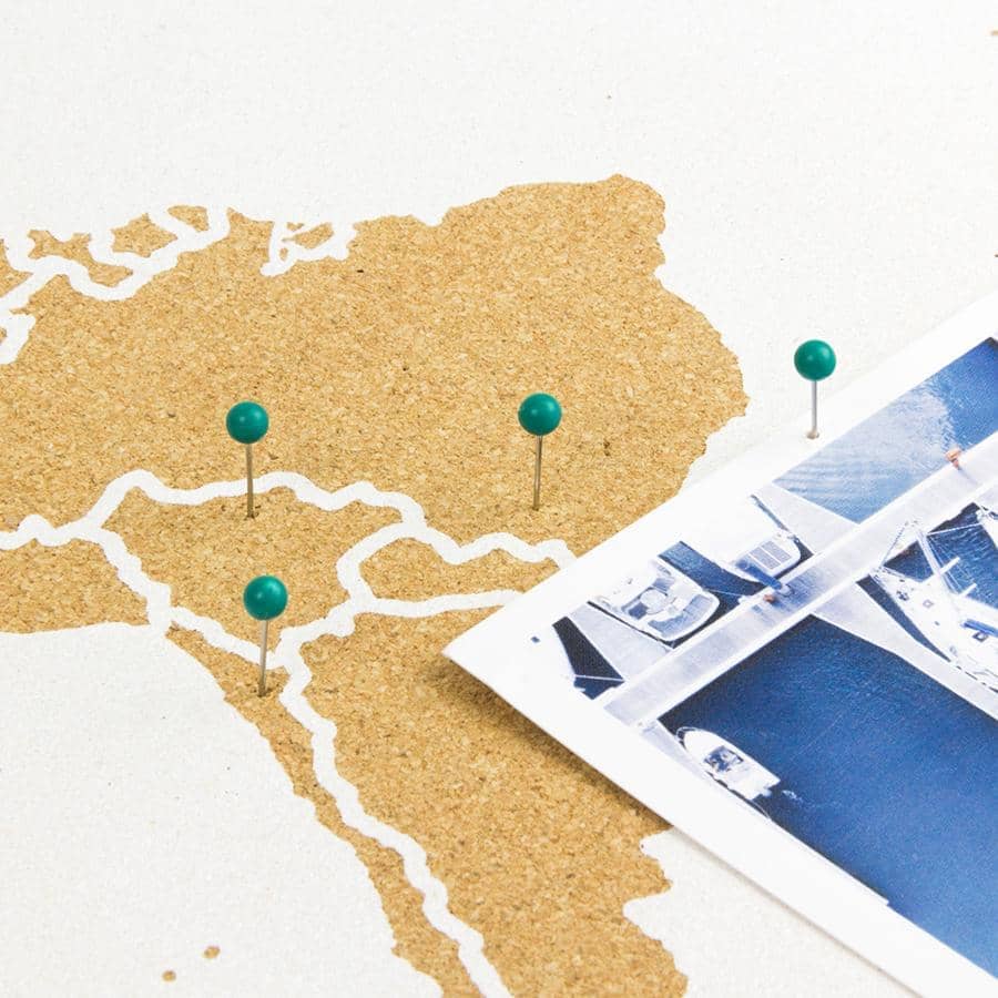 Pinke: Kennzeichnen Sie Ihre nächste Reise mit einem rosafarbenen Pin. Dieses eine Ziel, das kurz bevorsteht und zu dem Sie sich nur noch aufmachen müssen. Und das, das Sie bei Ihrer Rückkehr gegen eine grüne Stecknadel austauschen müssen.