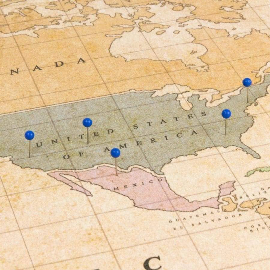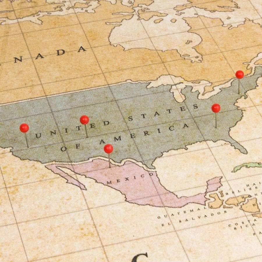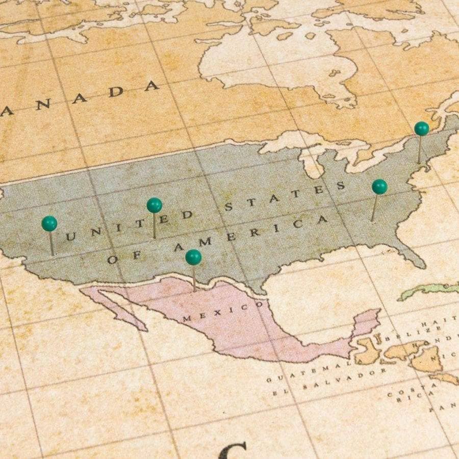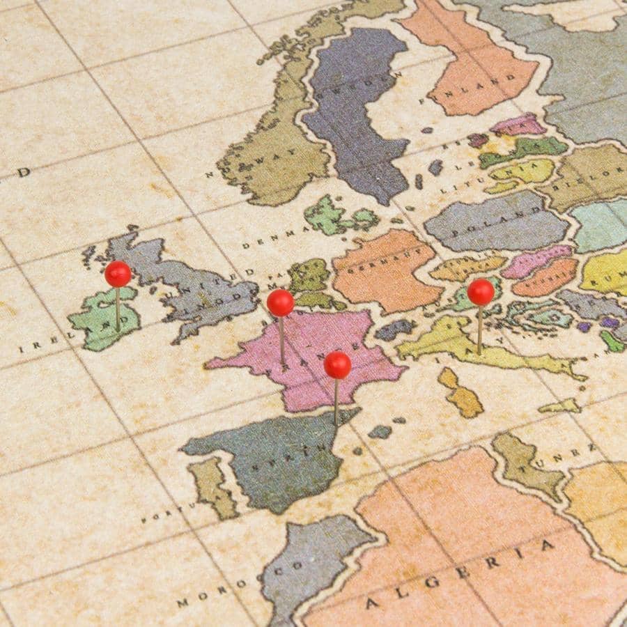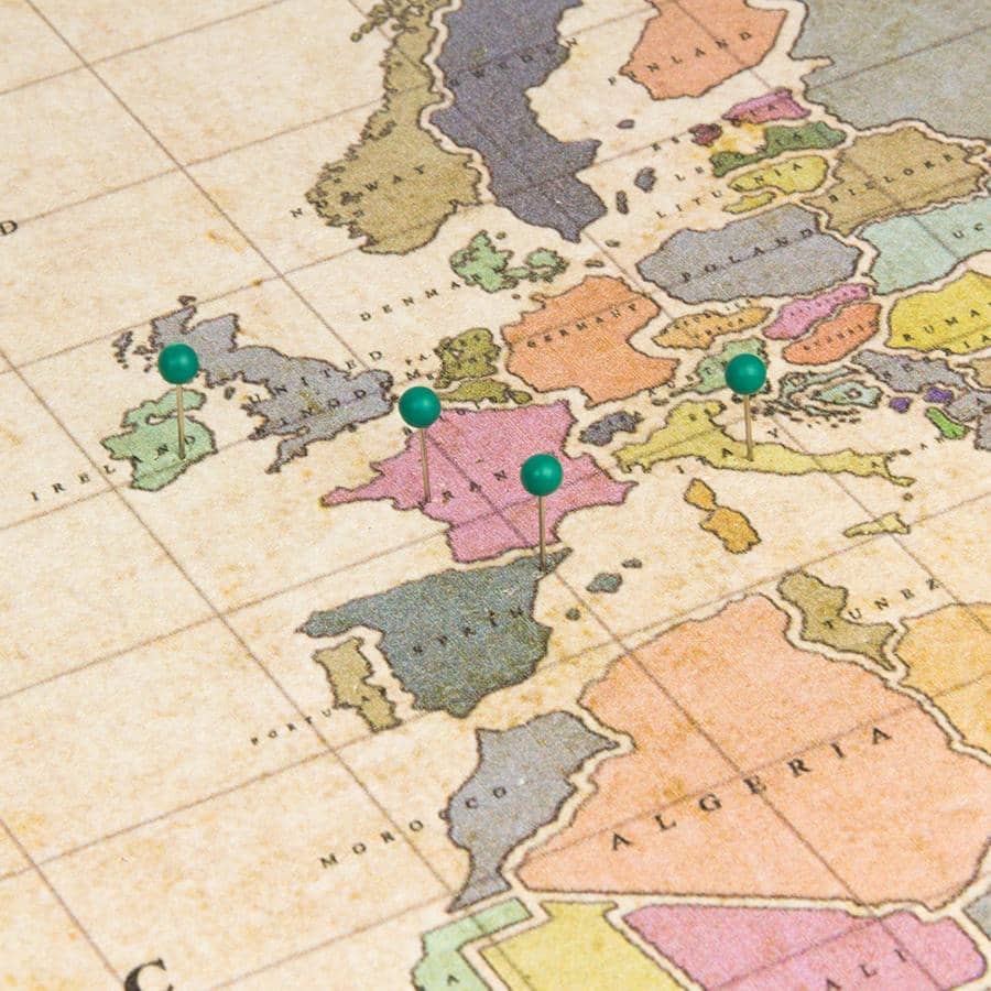Pinke: Kennzeichnen Sie Ihre nächste Reise mit einem rosafarbenen Pin. Dieses eine Ziel, das kurz bevorsteht und zu dem Sie sich nur noch aufmachen müssen. Und das, das Sie bei Ihrer Rückkehr gegen eine grüne Stecknadel austauschen müssen.