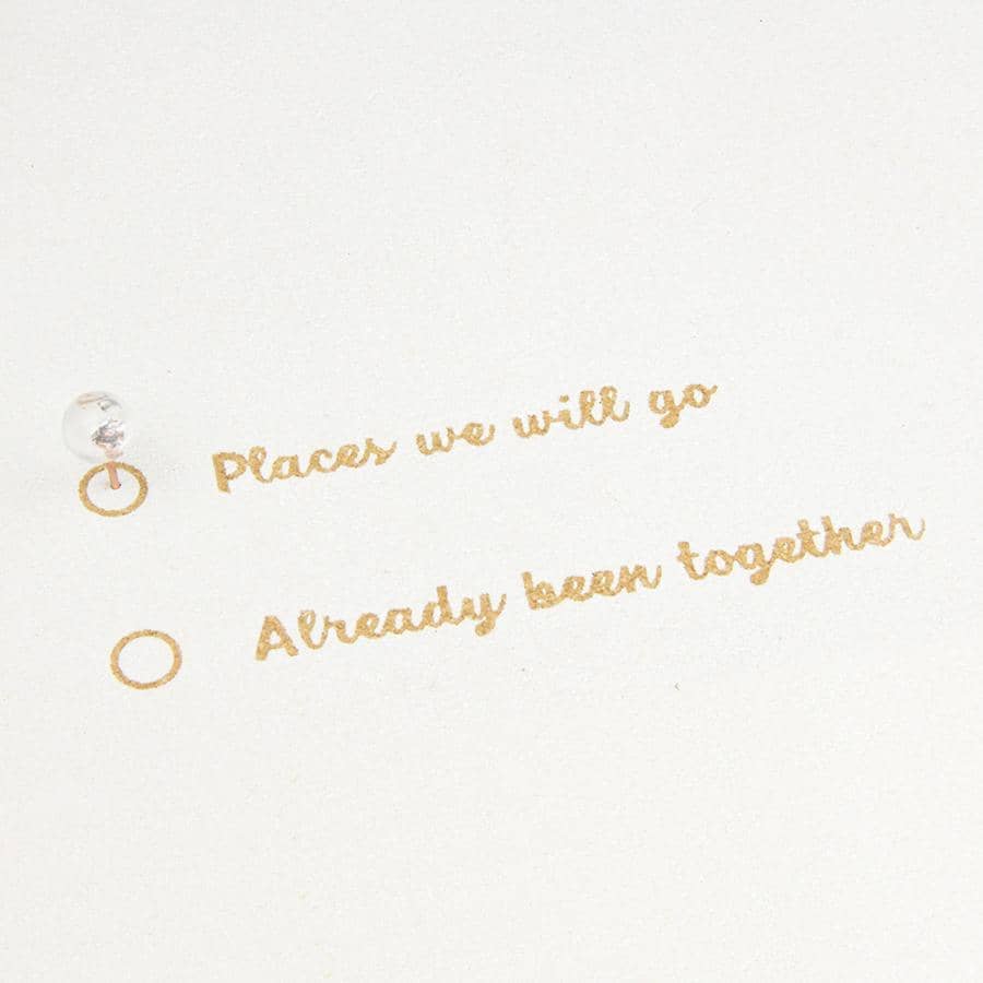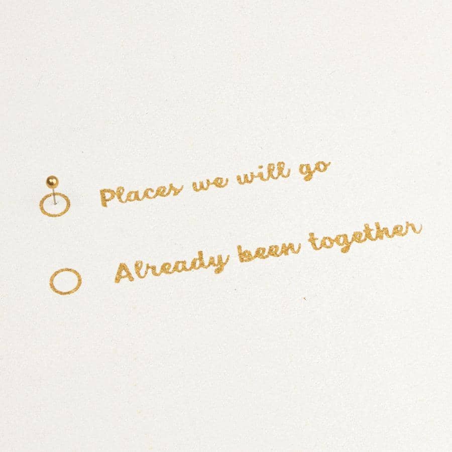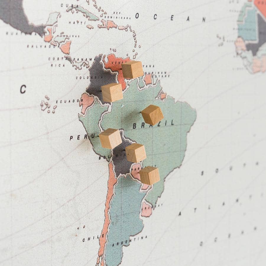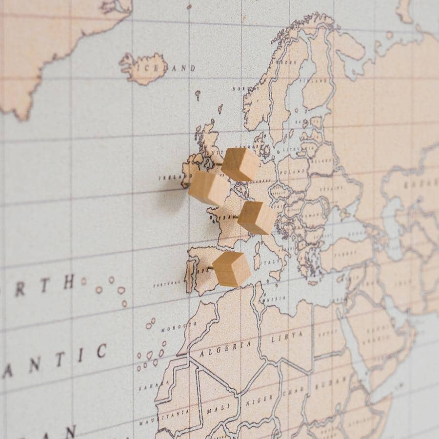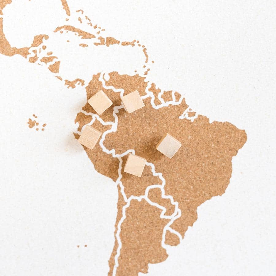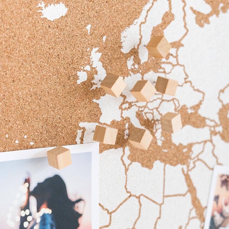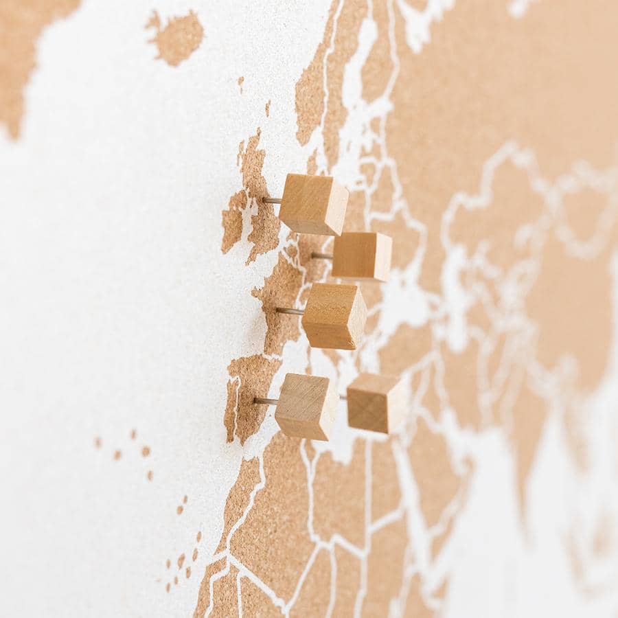 Holz : Eine personalisierbare Holznadel mit quadratischem Kopf, auf die Sie ein Symbol zeichnen und die Sie anschließend auf Ihre Karte stecken können. Zeichnen Sie zum Beispiel ein Herz und platzieren Sie die Stecknadel an dem Ort, an dem Sie sich verliebt haben.
