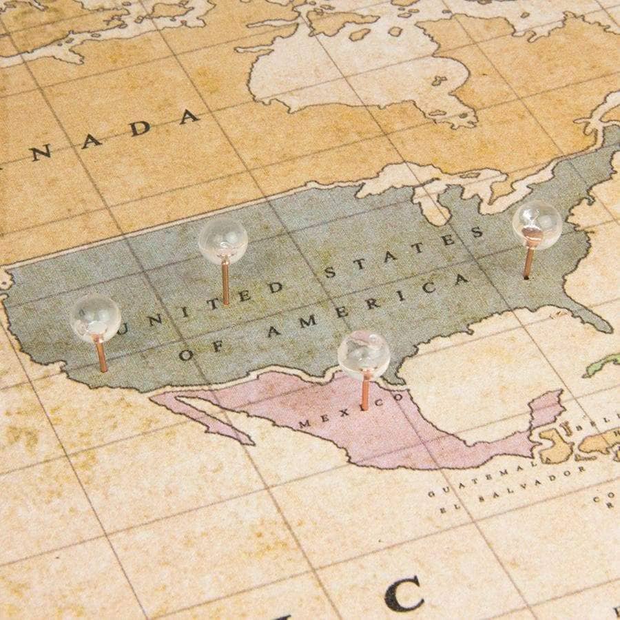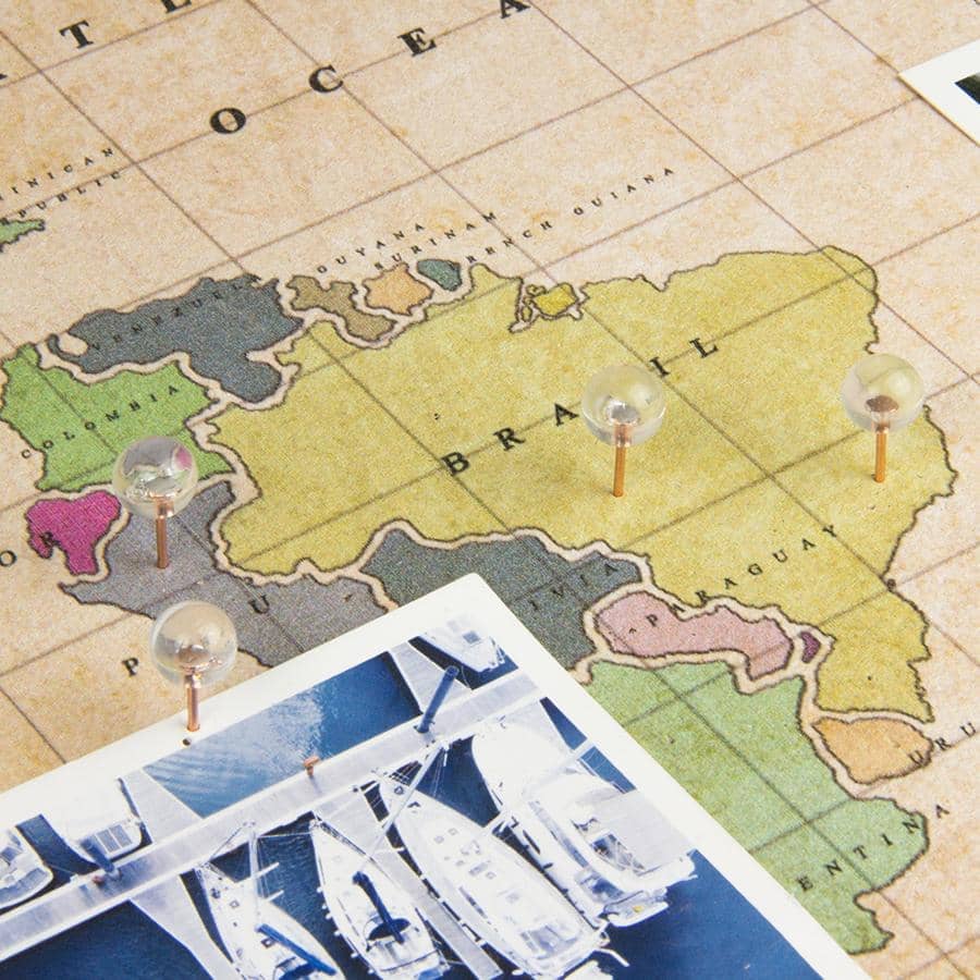 Wenn Sie Stecknadeln für Ihre Karte oder für Ihr Handwerk benötigen, müssen Sie nicht länger suchen. Wir haben die idealen Farben und Formen ausgewählt, damit Sie das Beste aus dem Ganzen herausholen. Eine originelle und dekorative Möglichkeit, Ihre Erinnerungen und Notizen aufzuhängen oder die besuchten und die nächsten zu entdeckenden Ziele zu markieren.